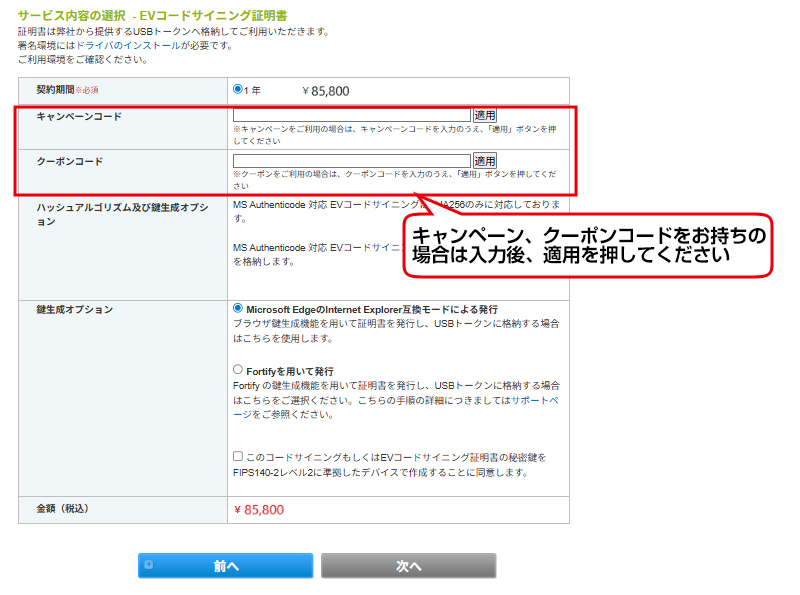 EVコードサイニング証明書 更新お申し込みフォームサンプル ステップ1 GSパネルヘログイン ステップ2 更新対象の証明書を選択 ステップ3 サービス選択 ステップ4 ディスティングイッシュネーム情報入力 ステップ5 審査情報入力 ステップ6 支払い方法入力