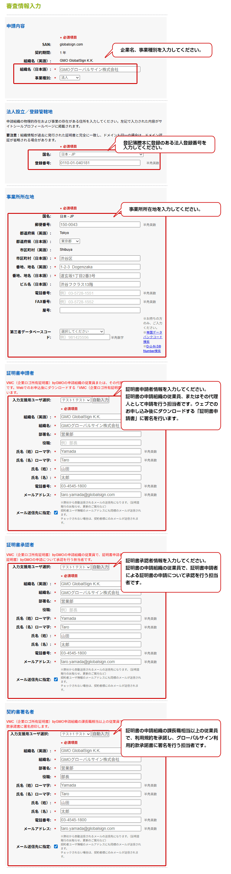 ステップ4 証明書情報入力/審査情報入力