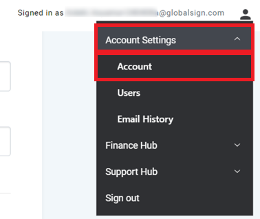 https://atlas.globalsign.com/にアクセスし、「Account Settings」を展開し、「Account」をご選択ください。
