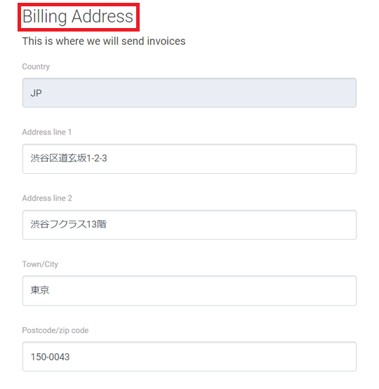 Billing Address へ必要な情報をご入力ください。