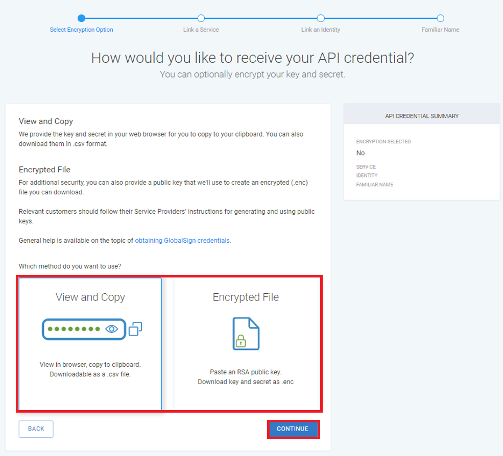 Encrypted File:公開鍵を使用する方法です。お客様で作成した公開鍵を使用して、暗号化された(.enc)ファイルを作成し、ダウンロードすることができます。