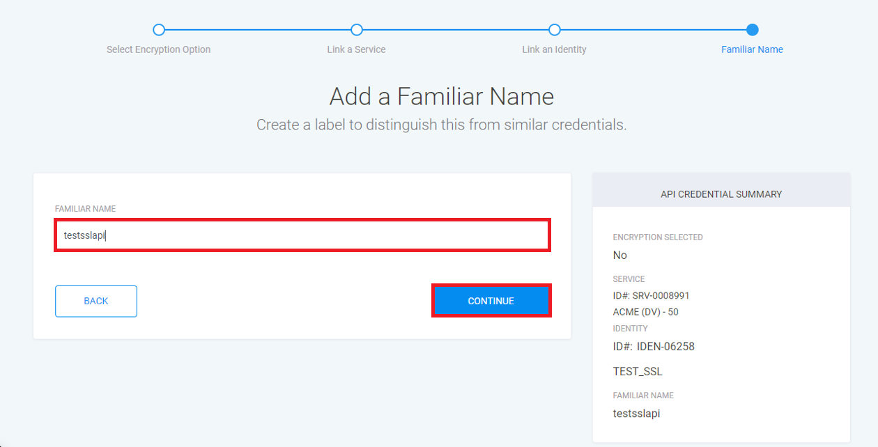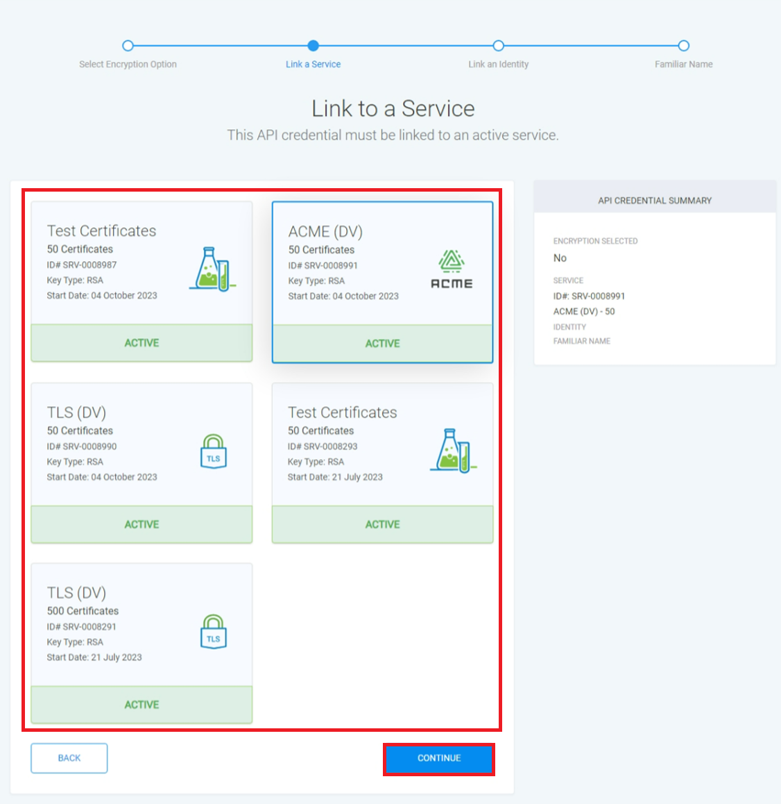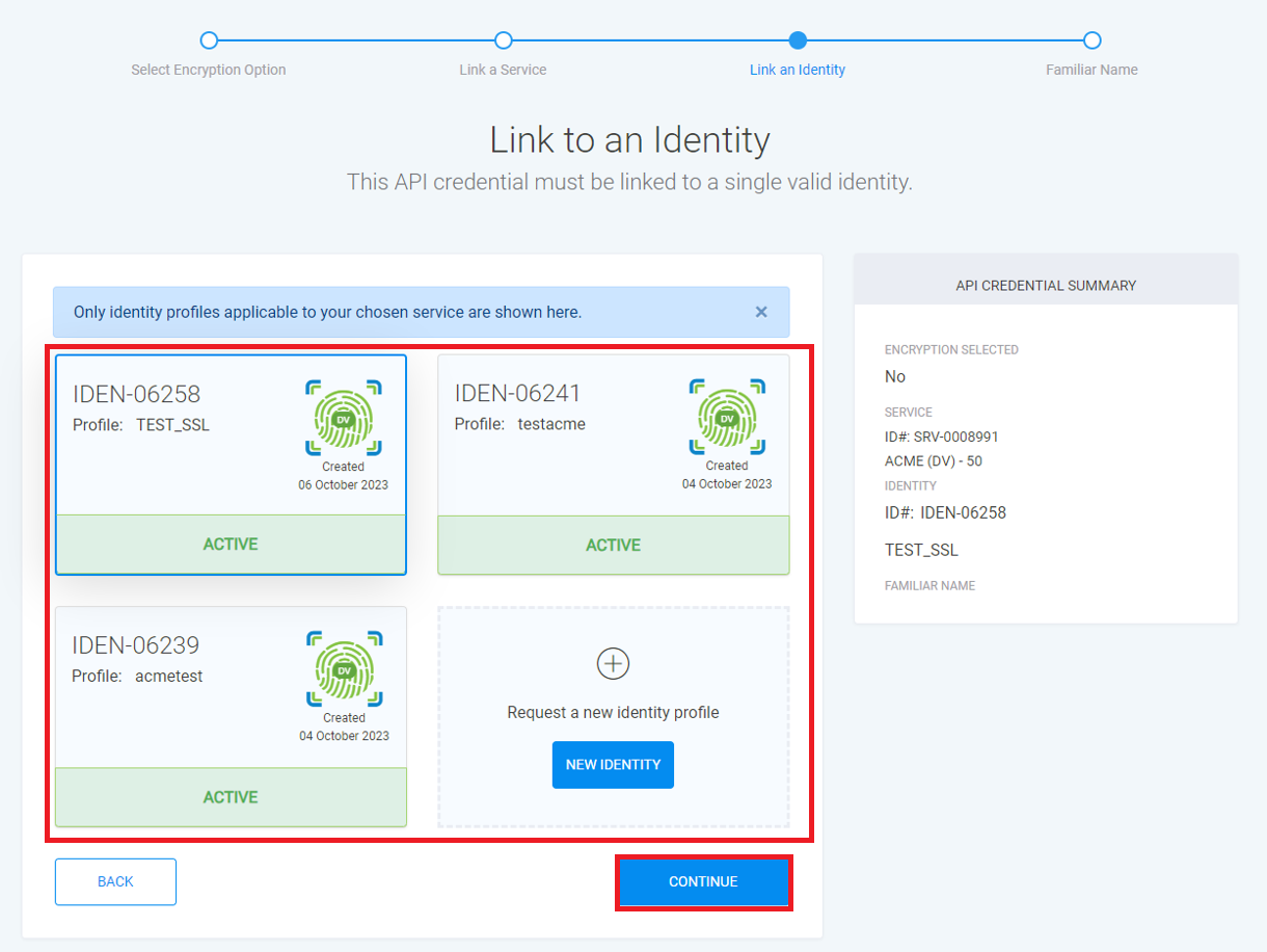 選択したサービスに対応したIdentity Profilesが表示されるため、任意のIdentity Profilesを選択し「CONTINUE」をクリックしてください。