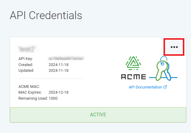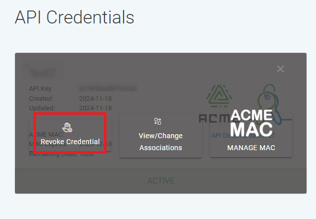 ※万一、API Key等が外部に漏れてしまった場合は、当該Credentialsの右上にある「…」をクリックし、「Revoke Credentials」より無効にしていただいた上で、再度API Credentialsの取得をお願いいたします。