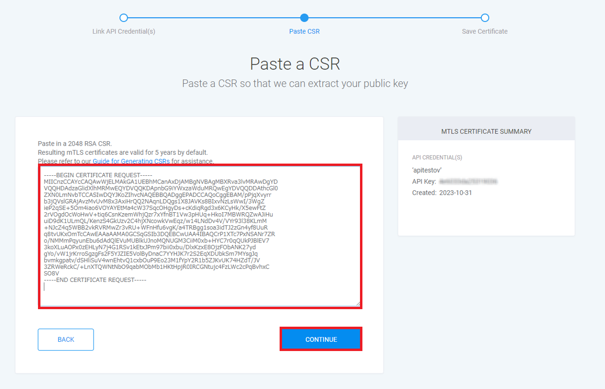 CSRをペーストし「CONTINUE」をクリックしてください。